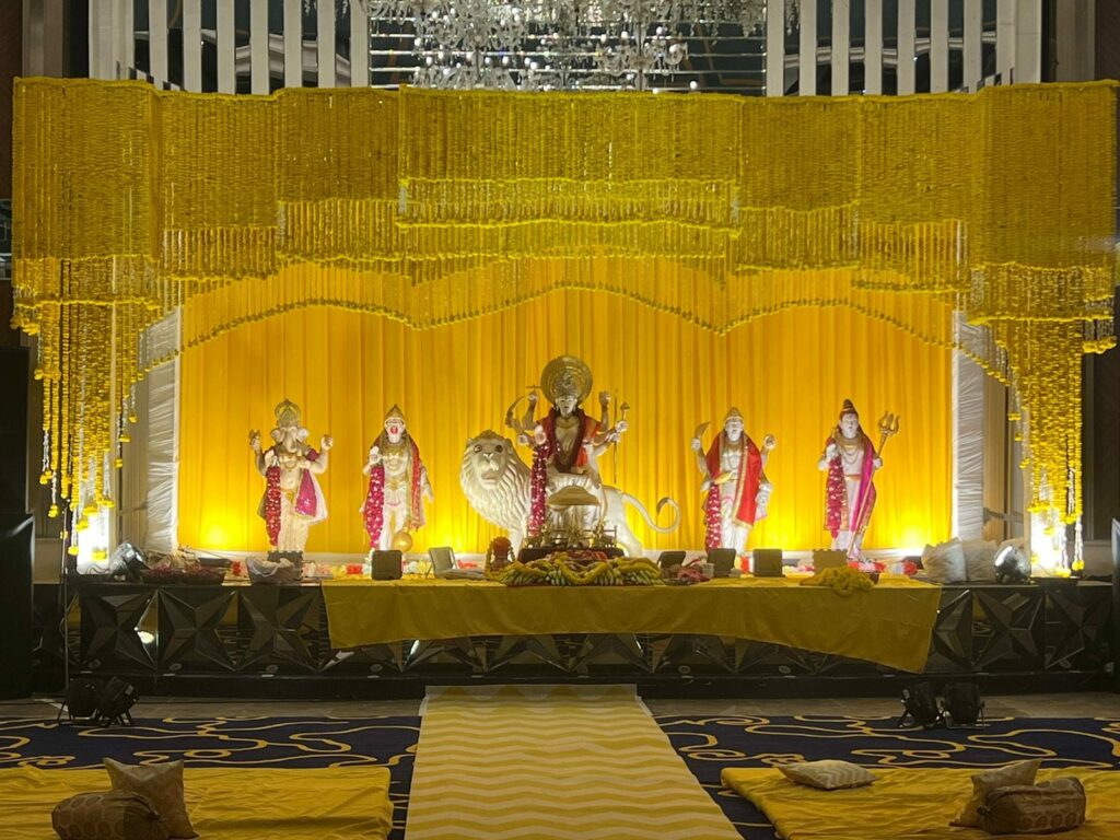 THIS IS A PROPER GOLDEN SHADE DABRAR WHITE HIGH QUALITY STATUES WITH ASTHETIC DECORATIONS